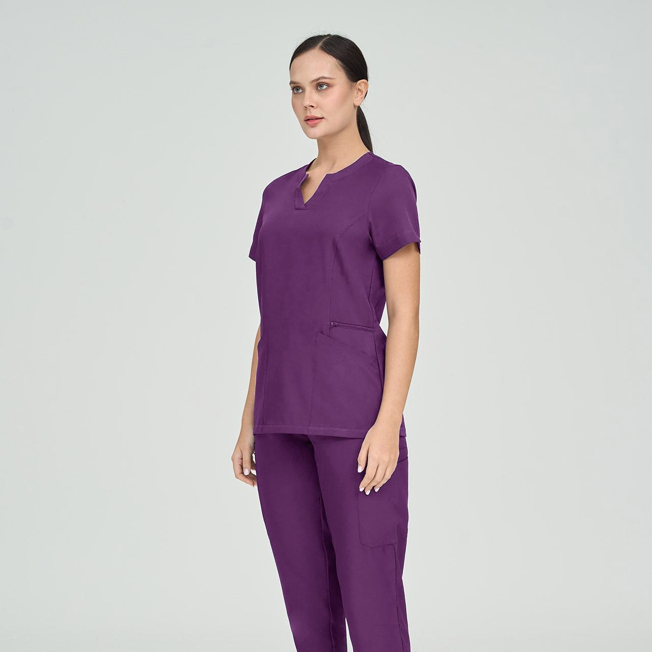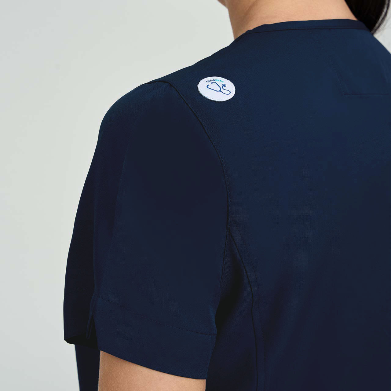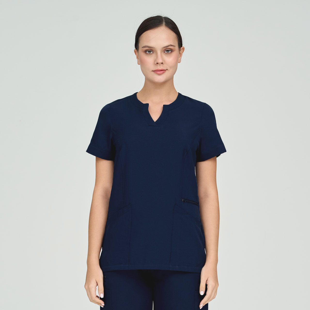 Introducing the Anna Scrub top, a stylish and functional choice for healthcare professionals. With its modest V neckline and princess seams, it combines elegance and shaping for a flattering silhouette. The top is equipped with two front side pockets featuring internal compartments, along with a secure front zip pocket, ensuring convenient and secure storage for medical tools. The bungee loop provides a practical solution for swipe cards or keys, while side splits allow for unrestricted movement. The curved back hemline adds a touch of sophistication and tailoring to the overall design. With a ladies’ fit and shaping at the waist, it offers a comfortable and flattering fit. With a total of four pockets, the Anna Scrub top is both practical and stylish, making it a must-have in any medical professional’s wardrobe.
